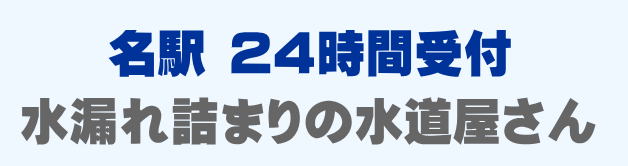 名駅で早くて安い水道修理業者をお探しの方は当店までお問い合わせください。蛇口の水漏れ、トイレつまり、排水口の溢れ、パイプ修理など、名駅での水道トラブルは最短15分到着です。名駅は24時間受付。名駅エリアは見積もり無料、出張費0円でスタッフがかけつけます。名駅にお住まいの方で水廻りのお困りごとはご相談ください。