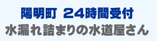陽明町で早くて安い水道修理業者をお探しの方は当店までお問い合わせください。蛇口の水漏れ、トイレつまり、排水口の溢れ、パイプ修理など、陽明町での水道トラブルは最短15分到着です。陽明町は24時間受付。陽明町エリアは見積もり無料、出張費0円でスタッフがかけつけます。陽明町にお住まいの方で水廻りのお困りごとはご相談ください。