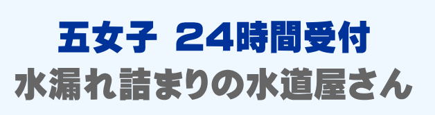 五女子で早くて安い水道修理業者をお探しの方は当店までお問い合わせください。蛇口の水漏れ、トイレつまり、排水口の溢れ、パイプ修理など、五女子での水道トラブルは最短15分到着です。五女子は24時間受付。五女子エリアは見積もり無料、出張費0円でスタッフがかけつけます。五女子にお住まいの方で水廻りのお困りごとはご相談ください。